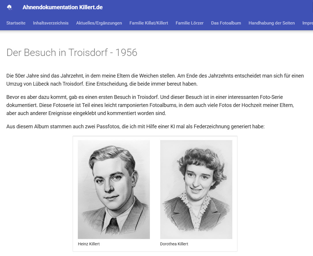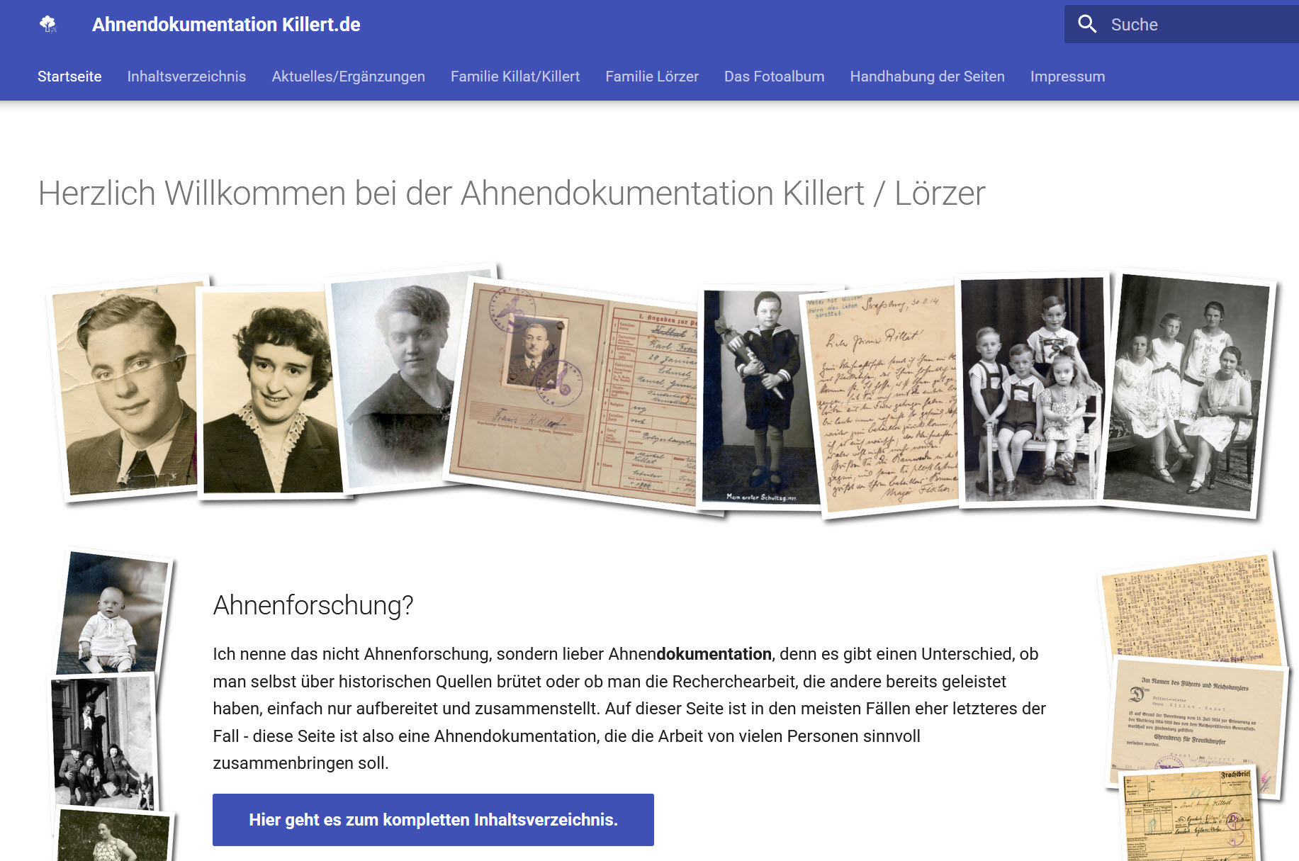 Lange Zeit gab es auf diesen Seiten Inhalte zur Ahnenforschung zum Namen Killert / Killat. Auch zur Familie mütterlicherseits mit dem Namen Lörzer habe ich einige Beiträge hier veröffentlicht.