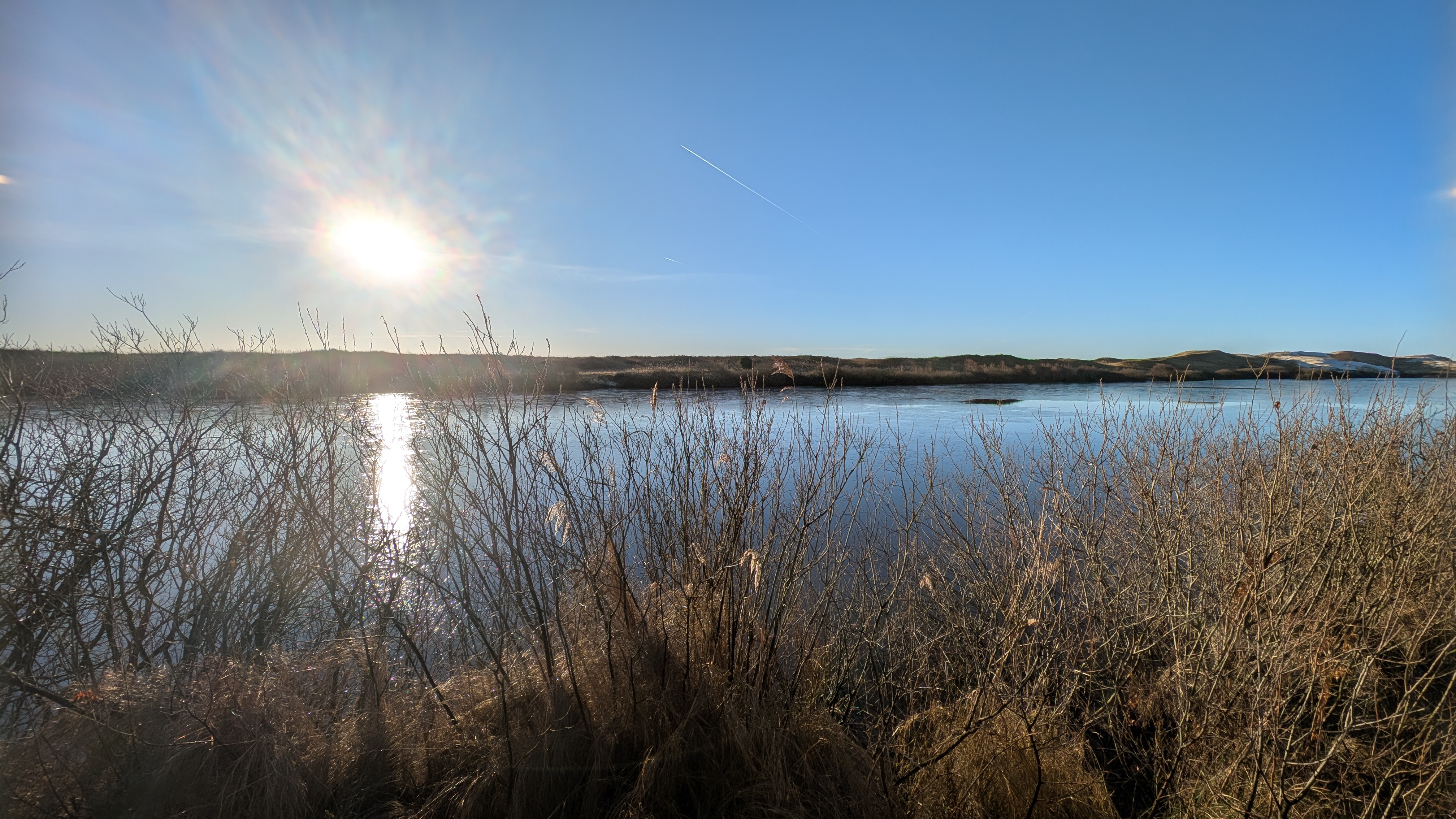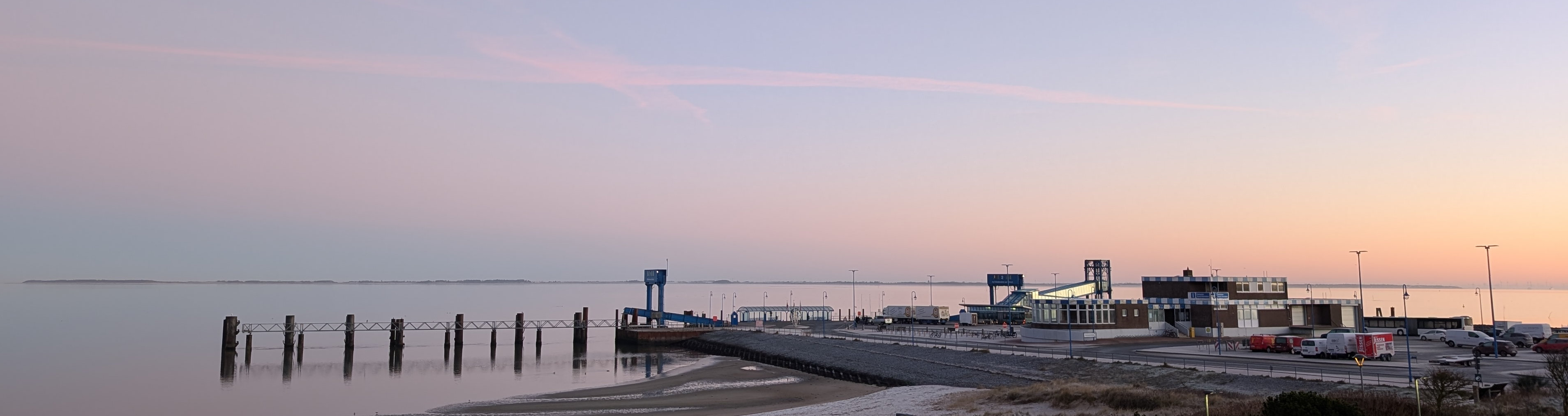 Heute morgen war es richtig kalt. Alle Wege waren mit einem Raureif und einer kleinen Schicht Schneegriesel bedeckt. Das war bisweile ziemlich rutschig. Heute morgen war es tatsächlich absolut windstill - Drohnenwetter. Aber ich würde die Drohne eh nur weit draußen auf dem Kniepsand starten. Und das war mir auf die Schnelle zu weit weg. Am späten Nachmittag wurde es dann etwas grauer und einen schönen Sonnenuntergang wie gestern gab es leider nicht.