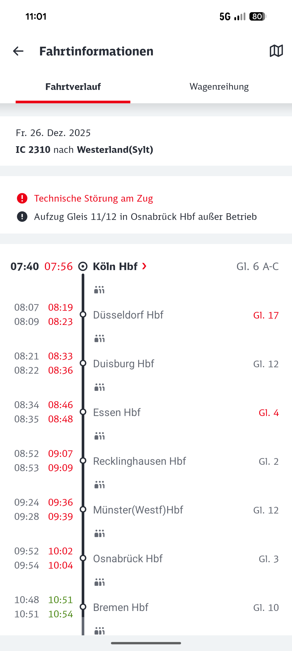 Die Push-Nachrichten scheinen jetzt zu funktionieren. Nachrichten über Verspätungen, Gleiswechsel oder Wagenreihung kamen bei mir rechtzeitig an und nicht erst, wenn man bereits im verspäteten Zug sitzt. Auch die Anzeigen der Nachrichten während der Fahrtverlaufes und die bei Verspätungen direkt kalkulierten, neuen Ankunftszeiten mit direkten Links zu Anschlussmöglichkeiten in den jeweiligen Halte-Bahnhöfen, funktioniert jetzt. Ebenso die Karte mit den GPS Koordinaten der aktuellen Zugposition.